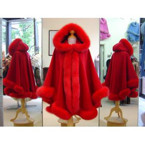 Red Cashmere Cape/Hood With Fox Fur Trim |